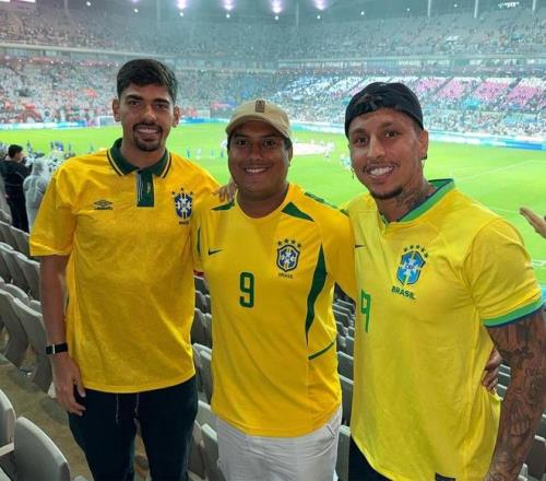 雷速体育10月11报道 昨晚,巴西队在韩国首尔进行的友谊赛中以5-0大胜韩国队。而效力于山东泰山的巴西籍外援克雷桑、马德鲁加均来到现场观看了这场比赛。