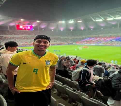 由于中超下一轮比赛在下周五和周六才会进行,因此山东泰山队员目前还处于休假状态。而克雷桑和马德鲁加就结伴来到韩国,现场观看巴西国家队的比赛。